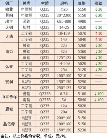 跌幅最大為山東傳洋型材;